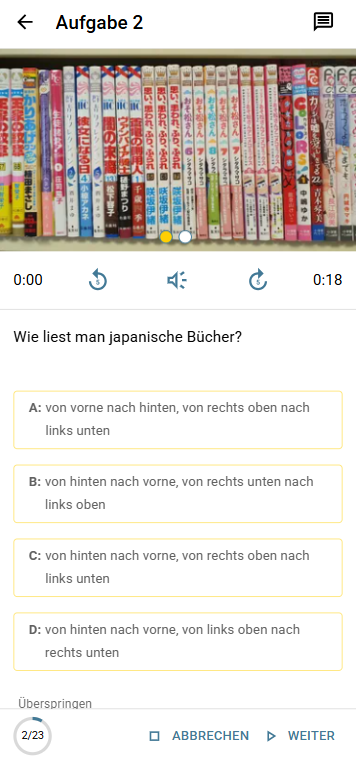 Tipp für die Planung: Plane ca. 30 Minuten Zeit für Pausen im Viertel ein. Viele Schülerinnen und Schüler nutzen die Gelegenheit gerne, um japanische Snacks (Onigiri, Bubble Tea) zu probieren.
