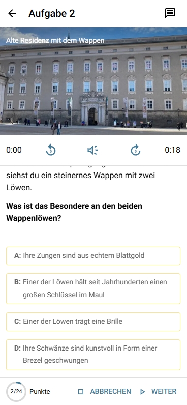 Egal, für welchen Anlass ihr nach Salzburg kommt, diese Schnitzeljagd ist die ideale Ergänzung für euer Programm. Sie ist lehrplanrelevant und deckt Themen aus Geschichte, Kunst, Musik und Gesellschaft ab. Von den Römern über die mächtigen Fürsterzbischöfe und das Genie Mozart bis hin zu modernen Kunstprojekten – die Tour schlägt einen Bogen durch die Jahrhunderte.